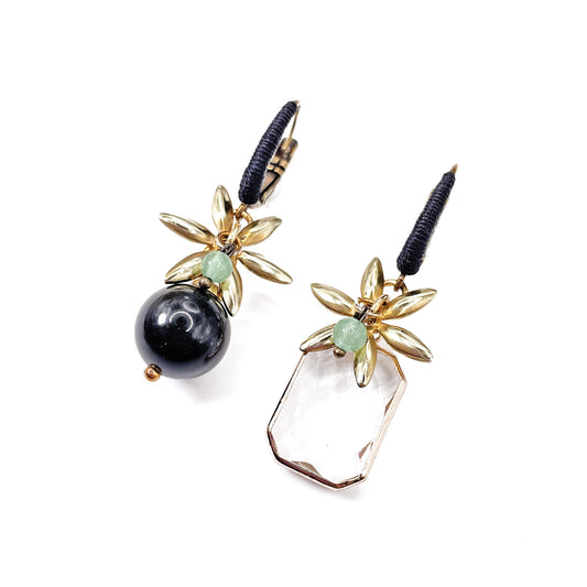 Hibiscus Orecchini con Pendenti Cristallo e Foglia