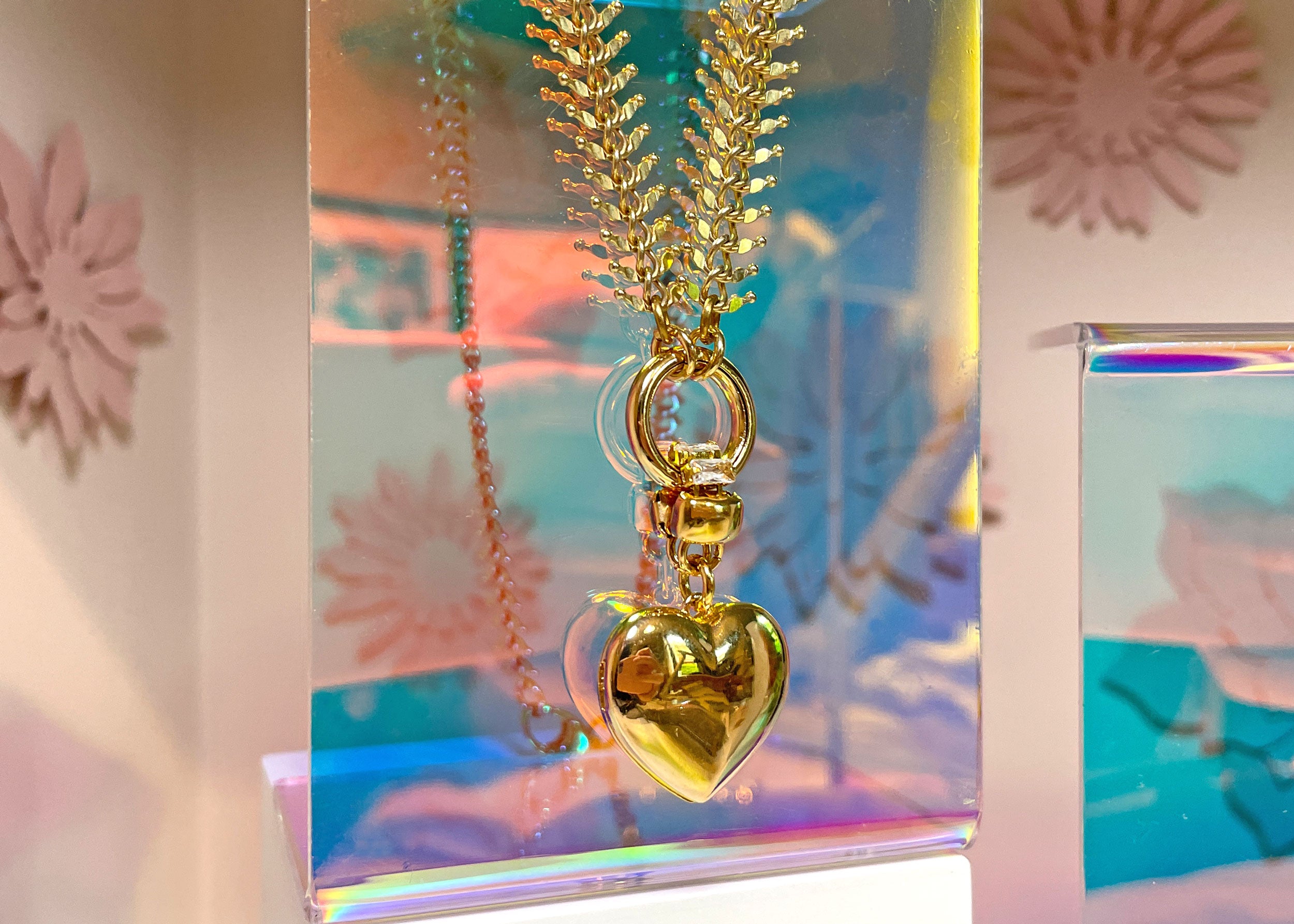 Necklace with Heart Pendants and Glass Chain